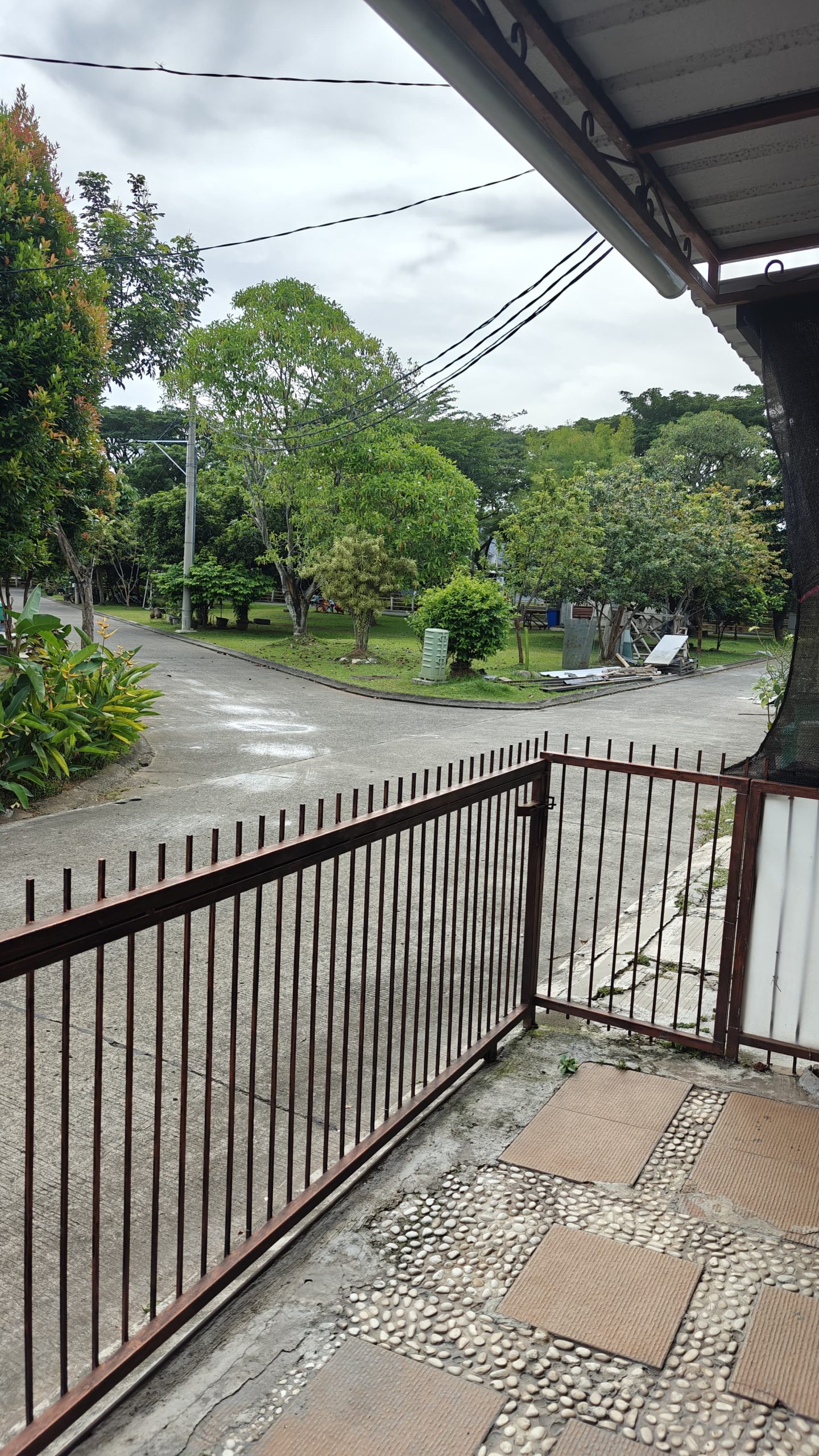 Hadap selatan, depan taman