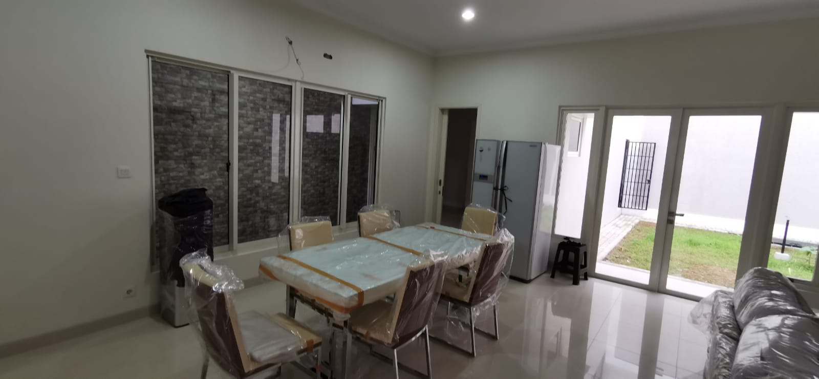 AC 5 unit, gorden , sofa dan meja makan merk Cellini , kulkas 2 pintu besar, mesin cuci , ranjang + kasur .