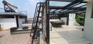 Renovasi 2,5 lantai lokasi sudut hadap timur utara, ada dak di atas, ruang rapat