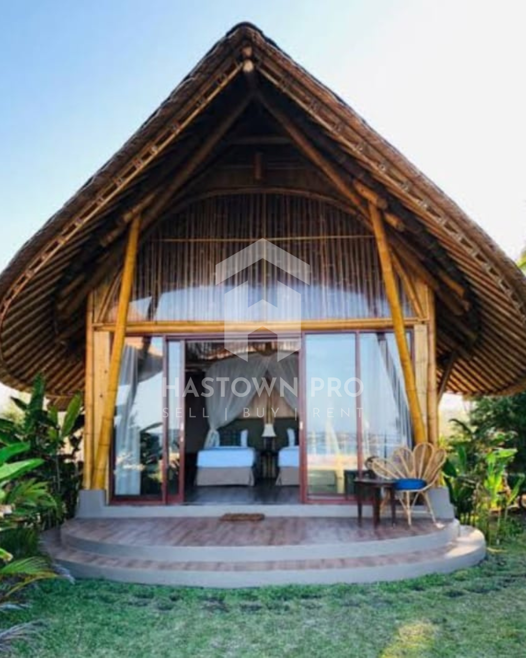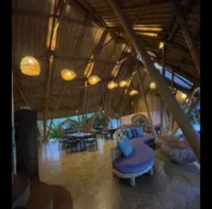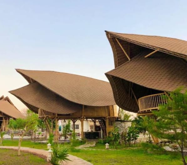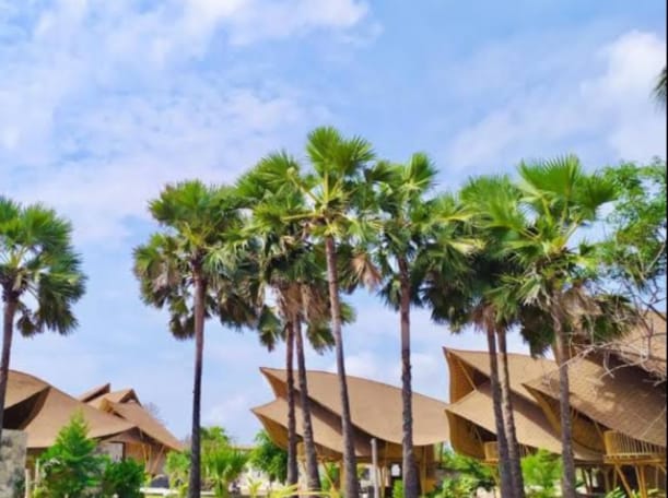 7 kabin bambu satu kamar tidur di tepi pantai (54,3 m²).